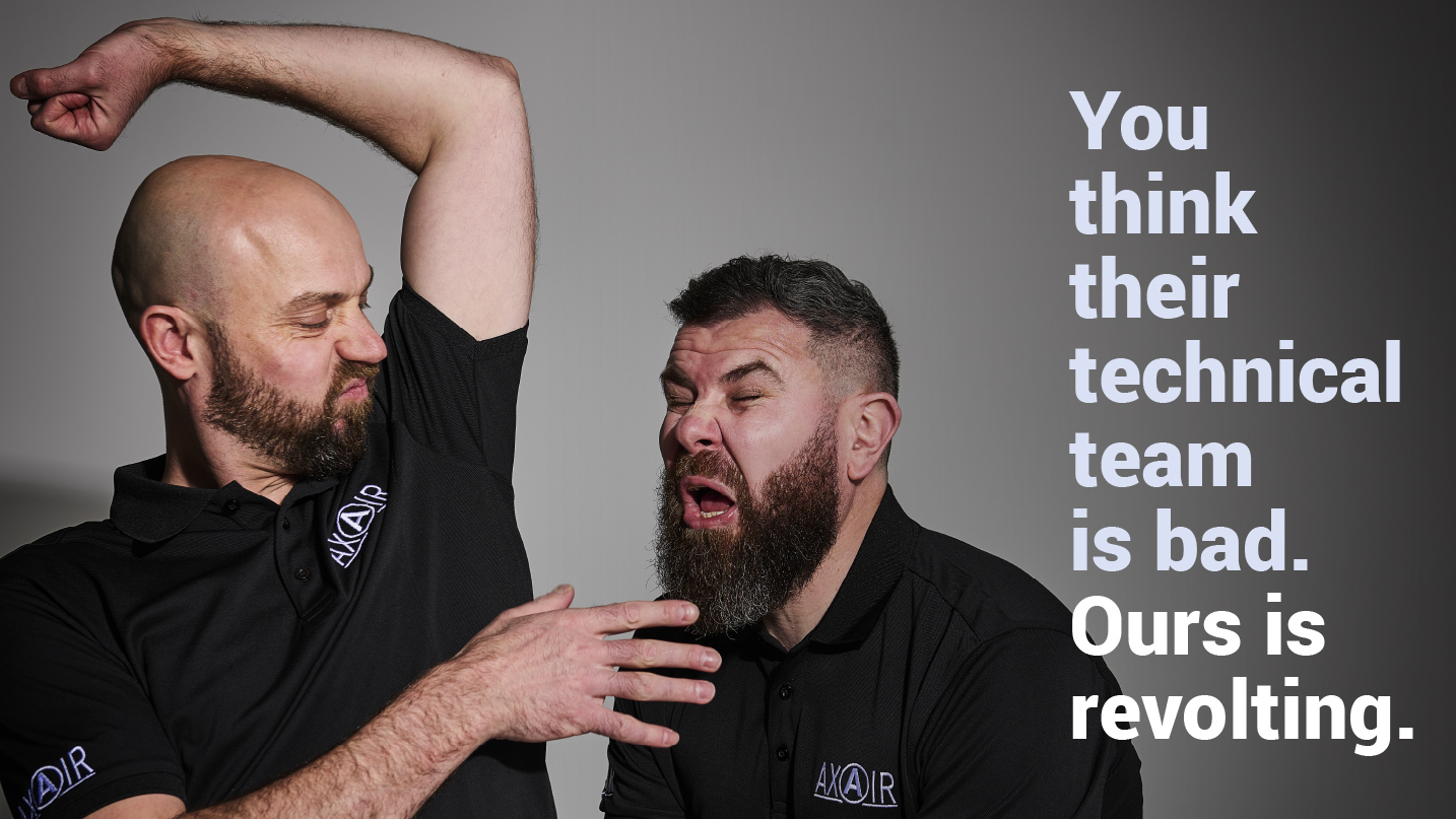 The campaign used punchy, self-aware messaging and striking visuals – featuring Axair’s own team – to build authenticity and engagement. We executed the concept across multiple digital and offline platforms, including email signatures, LinkedIn page headers and Google Ads.